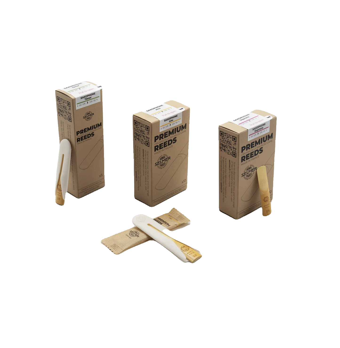 Experience exceptional sound with Henri SELMER Paris reeds for alto saxophone, ensuring unparalleled acoustic quality.