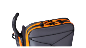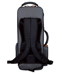 - Integrated ergonomic back cushion for comfortable backpack style transportation.