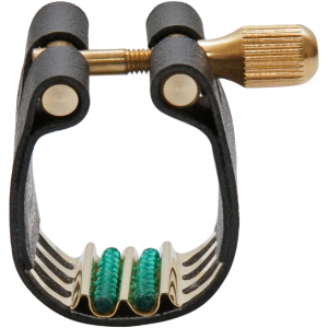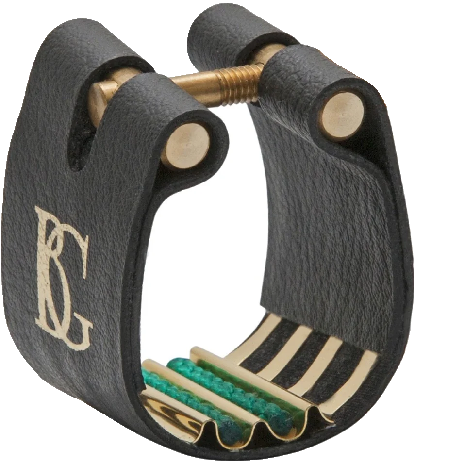 Fabric ligature with a 24k gold-plated metal plate. Brilliant and compact sound. Cap included