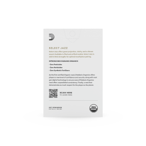 Organic Select Jazz offers great projection, clarity, and a vibrant sound. Available in filed and unfiled models, Select Jazz is sold in third strengths for optimal mouthpiece pairing. Each reed in the pack comes single-sealed in a recyclable paper reed holder and flow wrap.