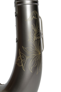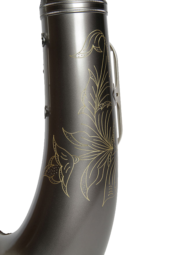 Straight body Tenor saxophone in Gray Onyx with Satin Silver Keys and Trim. Bell size 5.95”