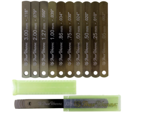 Our new feeler gauge set includes all sizes needed to accurately measure a mouthpiece tip opening and has both US and Metric numbering. We even have a big 3mm (.118″) gauge included. You no longer need separate sets of feeler gauges for US and metric; you only need this one!