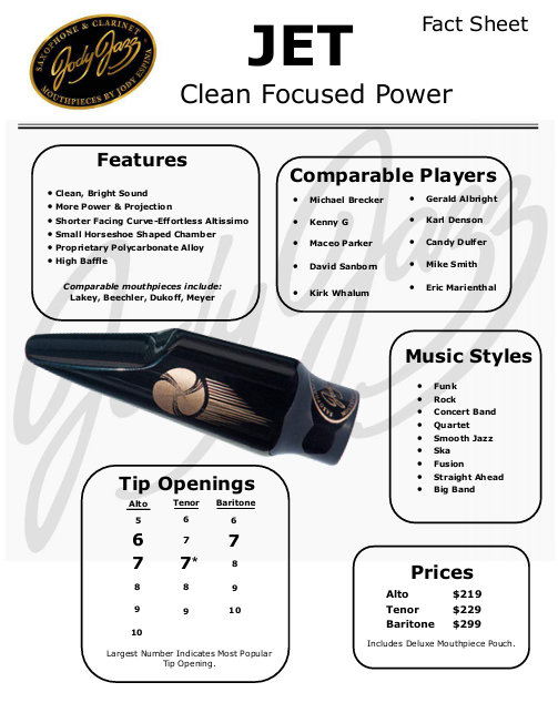 If you like the Baritone sax sounds of Doc Kupka of Tower of Power, Ronnie Cuber, Bruce Johnstone, Nick Brignola, Jeff Coffin of Dave Mathews, Roger Lewis of the Dirty Dozen Brass Band or Jason Marshall, then you are sure to love the new JET Baritone.