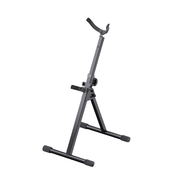 Extremely stable folding stand for holding heavy bass saxophones. Thanks to a variety of adjustment options, the stand is suitable for a wide range of sizes and models. For example, the distance between the two rubberized, protective instrument supports can be selected from 70 to 880 mm. The solid steel construction with the durable powder coating is easy to handle and therefore ideally suited for rehearsal room, studio or mobile use. An adjustable end cap also ensures a wobble-free stand.
