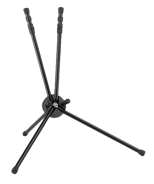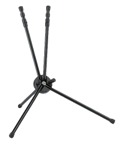Robust and handy: This compact saxophone stand, the »Saxxy«, provides support for Bb tenor saxophones. The wonderful thing about it is that, when folded up in the velour bag that comes with it, the stand can be stored and transported in the bell of the saxophone.