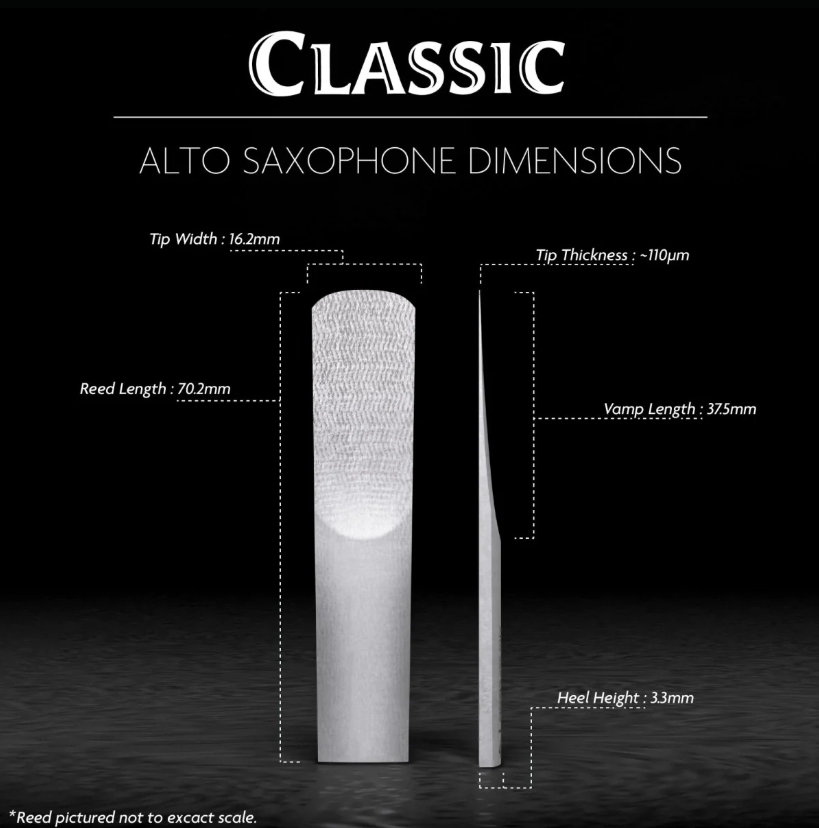 A durable and darker reed with fewer overtones than the Signature. A thicker tip and heart produces a purer tone with fewer complexities. The Classic for Saxophone is the recommended cut for marching band performers and those blending their sound with a large ensemble.