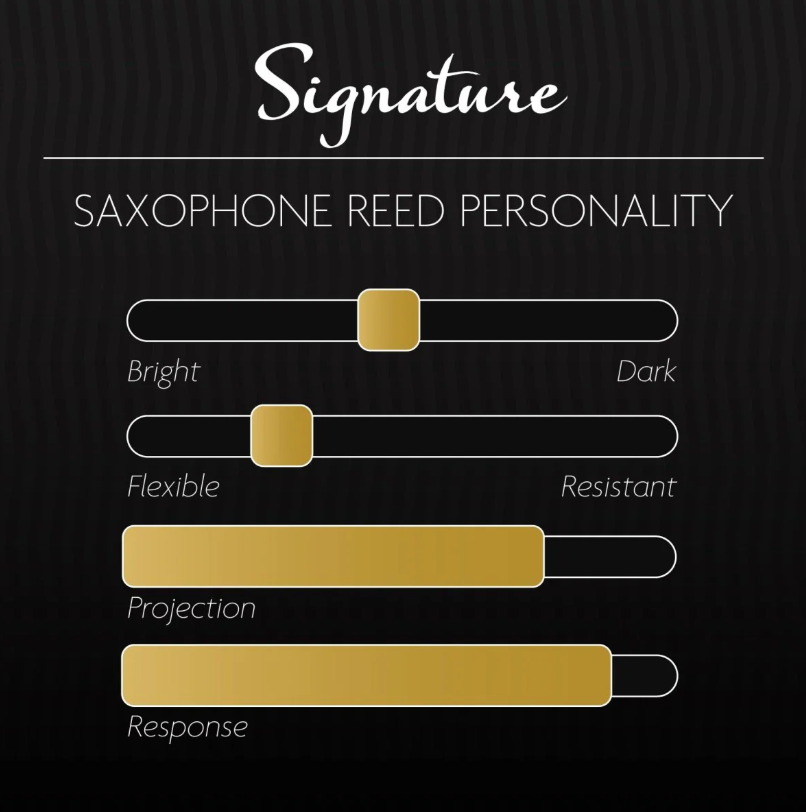 A bright and stable reed colored with a full spectrum of overtones. The reed is very responsive and articulate due to its relative thinness versus the Classic. The Signature for Saxophone is the recommended cut for players in solo, classical, or jazz studio settings.