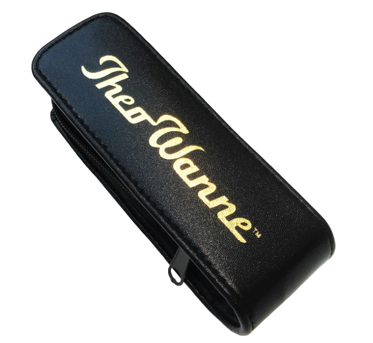The pouch wears the Theo Wanne™ logo. We use this pouch to ship all our mouthpieces, and you can get extras for all of your other mouthpieces too!