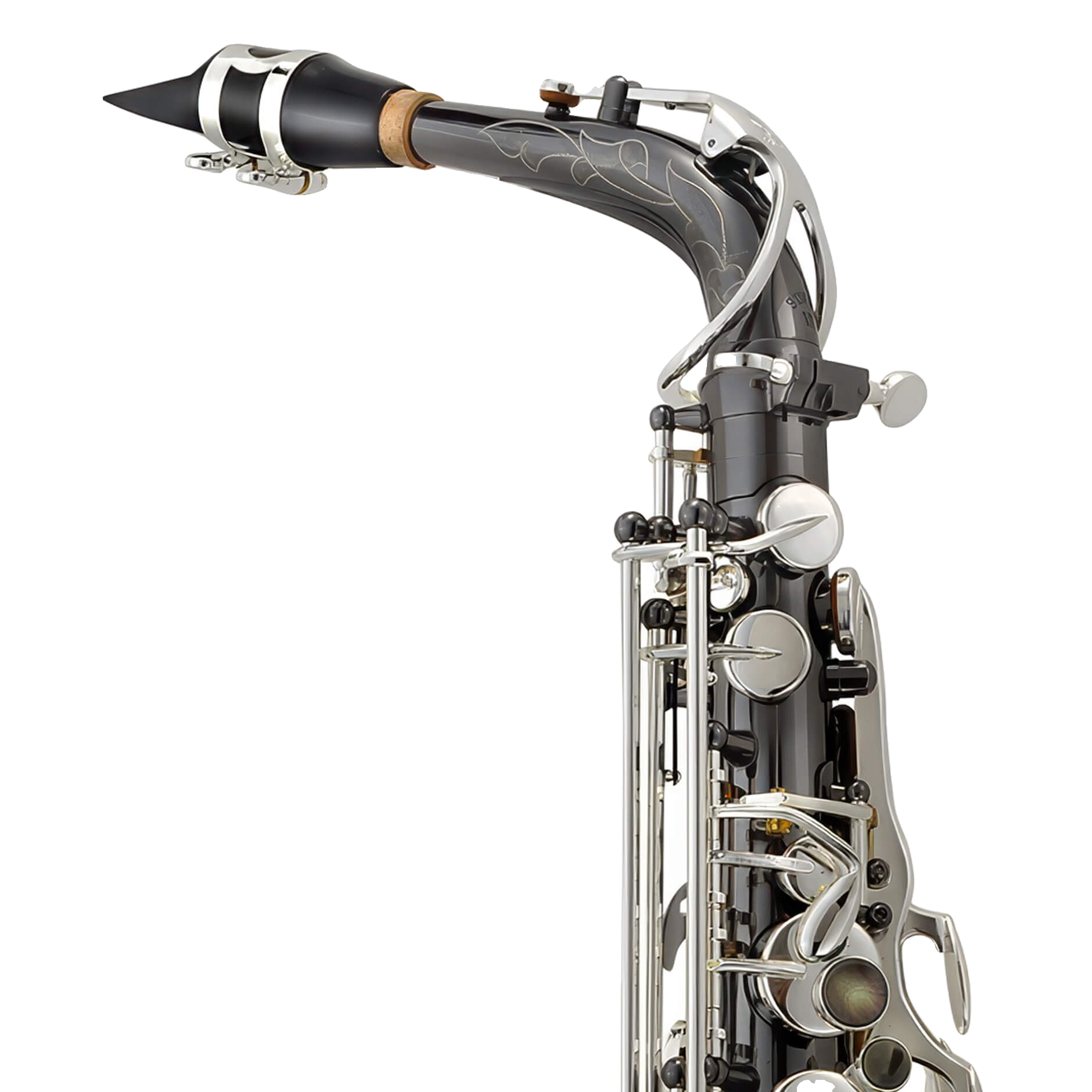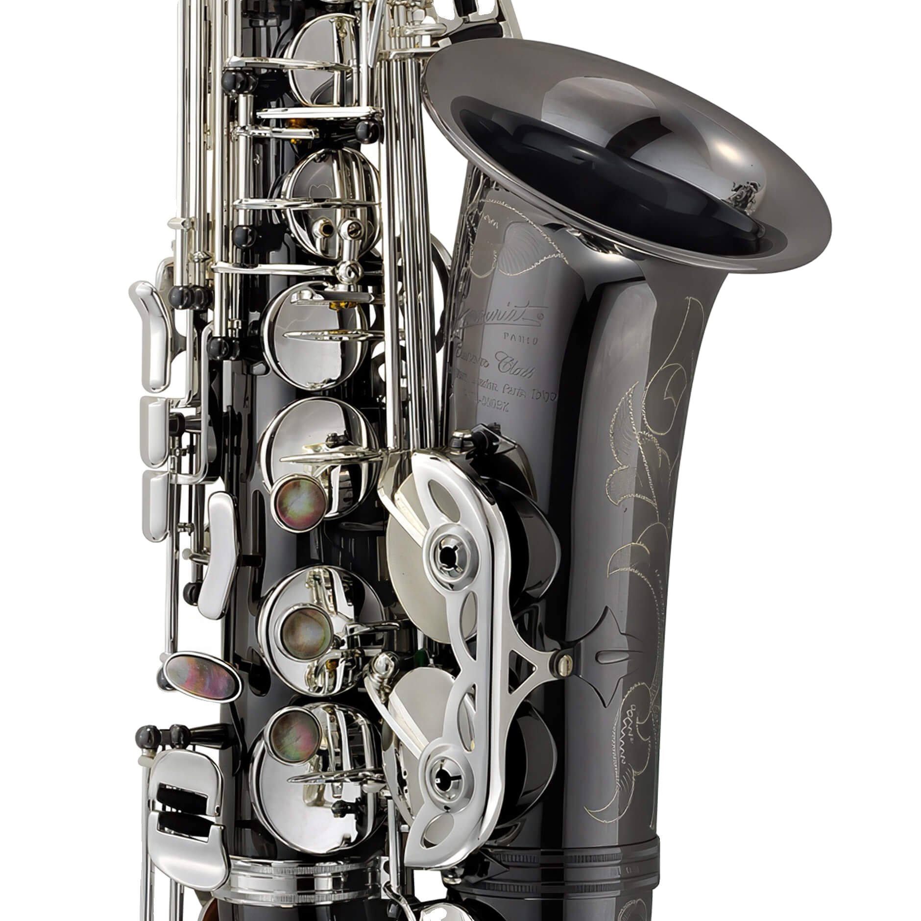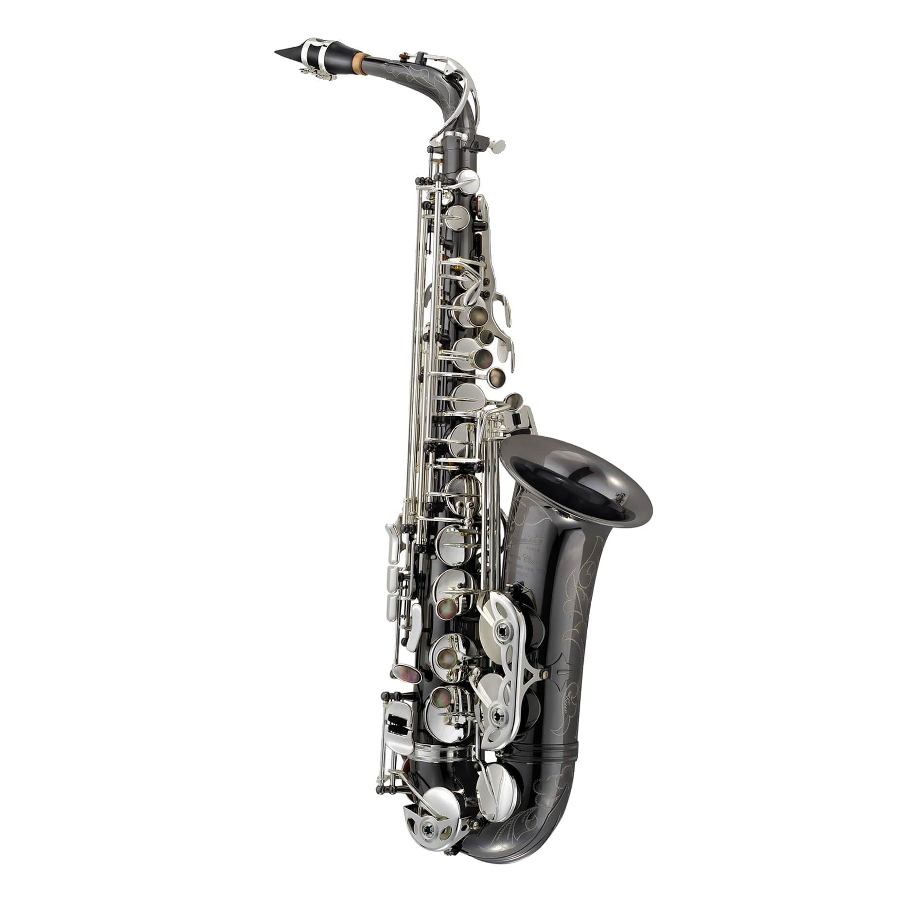 The P. Mauriat Black Pearl series saxophones are premiere, artist-level instruments that deliver immense tonal possibilities, yet also possess unparalleled aesthetic refinement. The large bore taper, combined with the enlarged bow and flared bell, enable resistance-free low notes and an omni-directional sound, while the black nickel body plating helps deliver a dark, focused, and silky sound. Featuring ergonomically designed left and right pinky tables, easy access side keys, extremely stable silver plated keywork with black pearl key touches, and ribbed construction, this saxophone has unlimited possibilities.