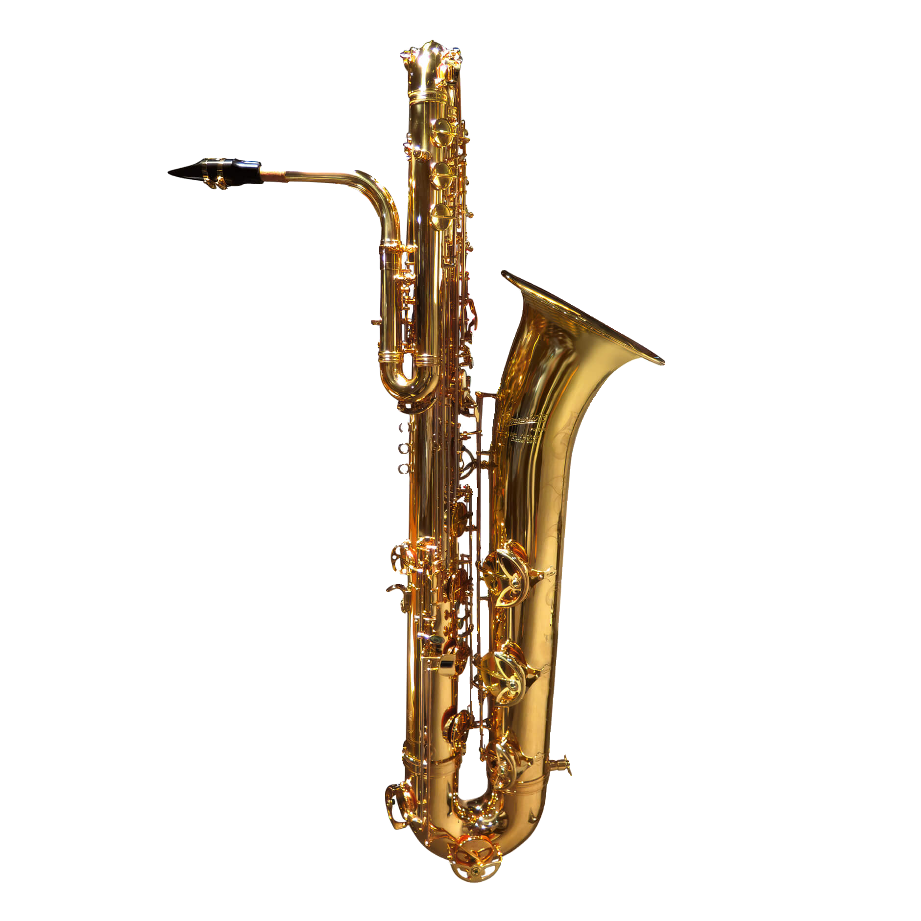The P. Mauriat Professional Bass Saxophone is a must have for any military band, professional woodwind doubler, collegiate saxophone arsenal, or ensemble looking for serious low reed presence. With fully ribbed professional construction, mother of pearl key touches, and heavy duty bracing throughout, this instrument is designed withstand a lifetime of service. Players will appreciate the ergonomic placement of the left and right-hand pinky tables, deep pinky key scoops, easy-access side keys, and overall “smaller hand feel” that facilitate easier key manipulation. Available in traditional Gold Lacquer.