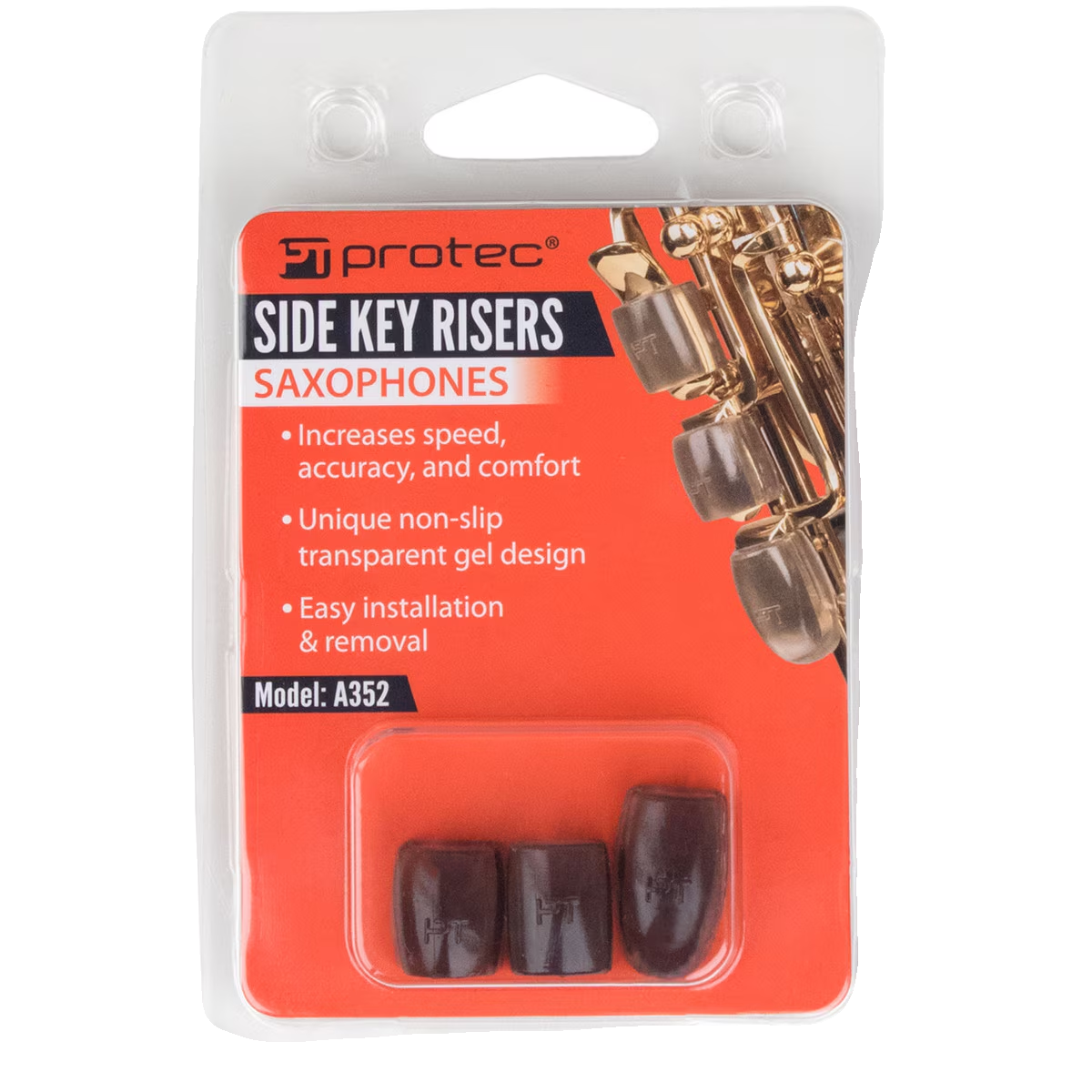 Protec’s Saxophone Side Key Risers’ non-slip grip surface and unique transparent design will help increase speed, accuracy, and comfort while playing. Includes set of 3 side key risers.