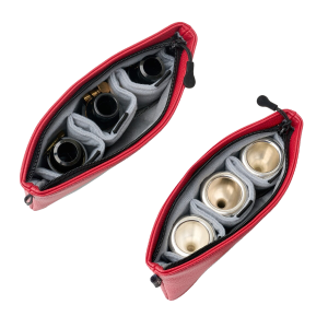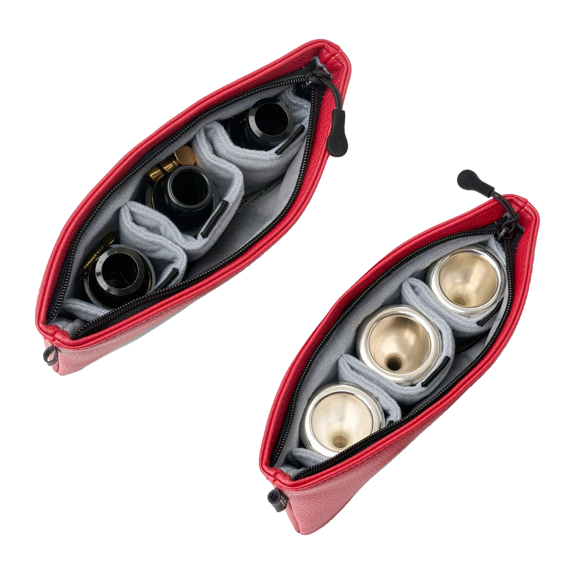 Crafted from durable premium leatherette, these pouches offer padded sleeves to keep your mouthpieces secure and protected. Designed for convenience, they feature pull tabs for easy access and a compact design complemented by a reliable zipper closure. A bonus small storage area inside provides room for your essentials, making this pouch both functional and stylish.