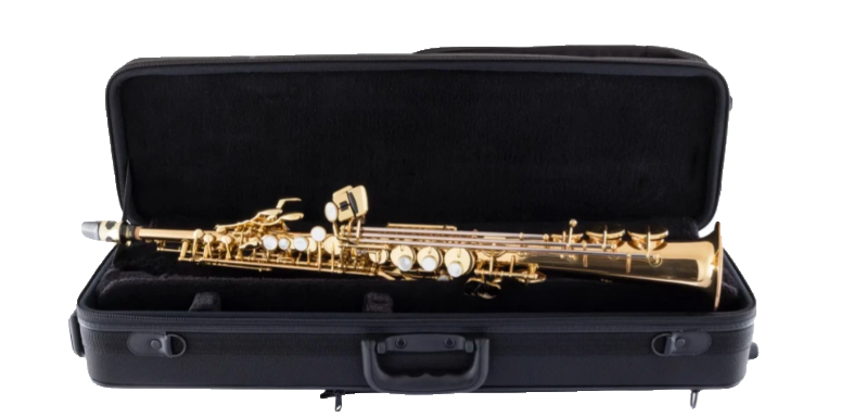 The SSS511 series intermediate soprano saxophone is available with beautiful gold lacquer finish ornamented by a hand engraved bell. To protect this instrument when not in use it comes with a premium ballistic nylon case featuring comfortable backpack straps, a spacious accessories compartment, durable handles, and an outer pocket to store sheet music.